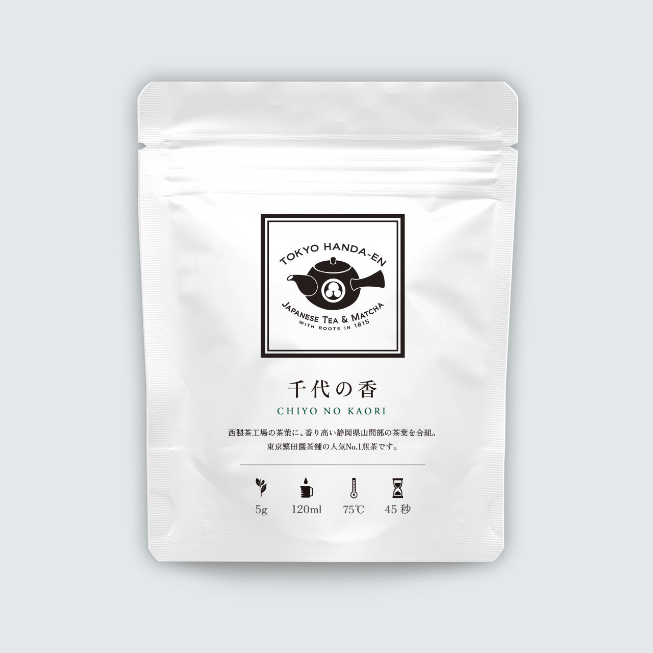 Based on organically grown tea leaves from the Nishi Tea Factory in Kirishima, Kagoshima Prefecture, the addition of tea from the mountains of Shizuoka Prefecture adds a refreshing aroma that founder Kozo Handa loved to call 'mountain fragrance'.